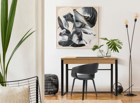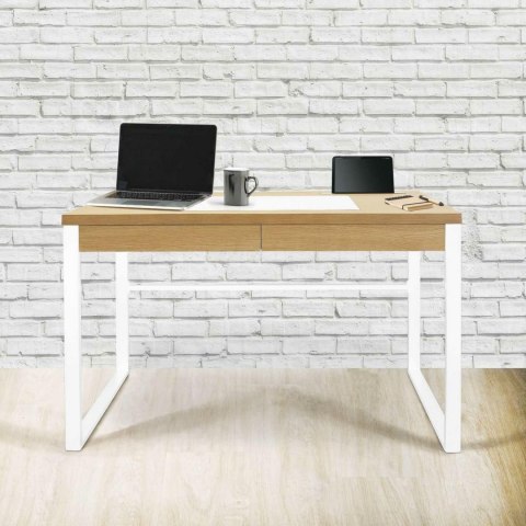 Biurko Dolem Industrial zostało wykonane z płyty MDF z okleiną w kolorze dębu sonoma. Podstawa mebla została zrobiona z metalu w kolorze białym. W środkowej części biurka znajduje się szuflada, która pozwala na przechowywanie niezbędnych drobiazgów. Biurko zostało wykonane w stylu Industrialnym. Na środku blatu została umieszczona biała podkładka z eko skóry, która będzie pomocna w pisaniu na papierze. Na blacie dostępny jest również otwór na przewód komputera. Produkt idealnie sprawdzi się w biurze lub gabinecie. Waga biurka: 17 kg Maksymalna ilość szt. w kartonie: 1 Wymiary kartonu: 110cm x 59cm x 16cm