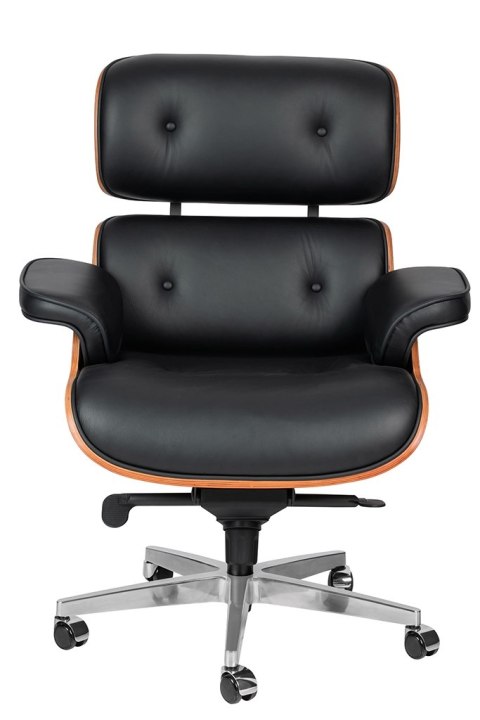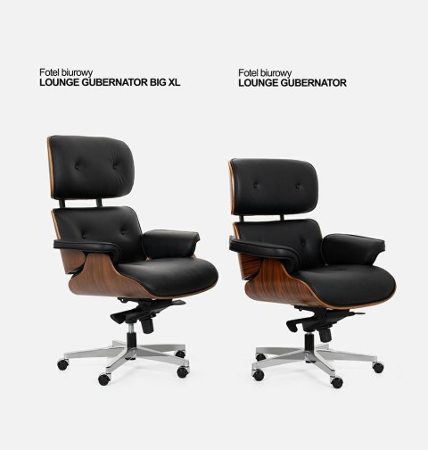 Fotel biurowy LOUNGE GUBERNATOR czarny - sklejka orzech, skóra naturalna, stal polerowana