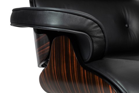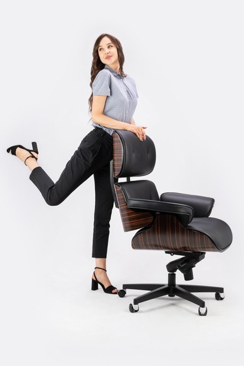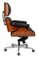 Fotel biurowy LOUNGE GUBERNATOR czarny - sklejka różana, skóra naturalna, stal polerowana