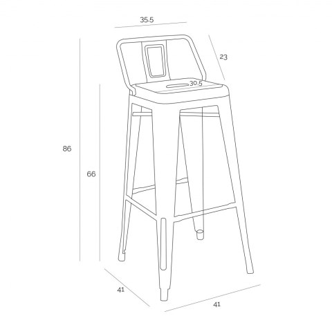 Hoker Paris Back short 66cm czarny insp. Tolix