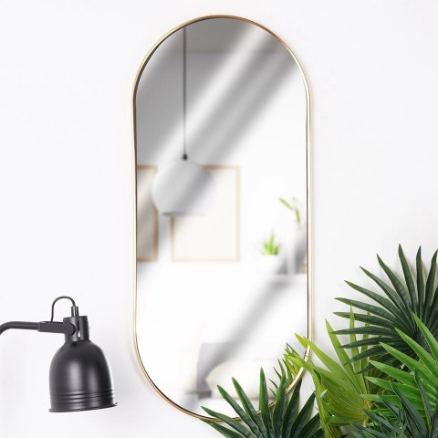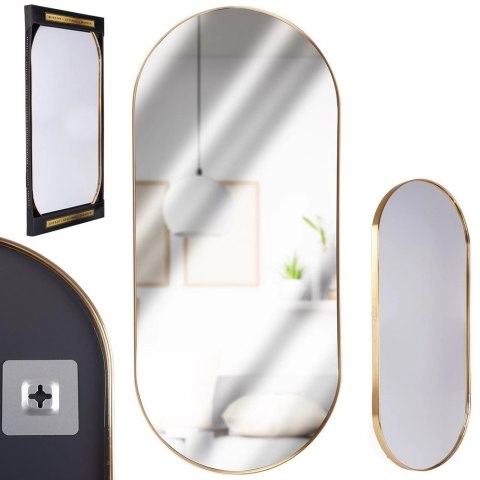 <li><strong>PRAKTYCZNE</strong> - Lustro ścienne w złotej ramie, posiada owalny kształt. Lustro ma wymiary 72 x 32 cm. Niezwykle efektownie prezentuje się w każdym pomieszczeniu.</li>