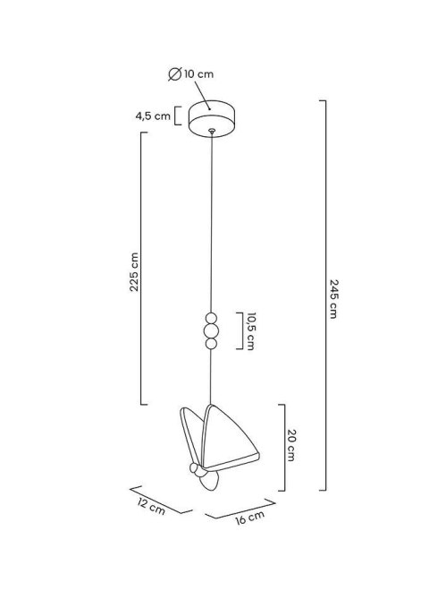 Na regulowanej lince mocującej znajduje się element dekoracyjny w kształcie kulek w kolorze podsufitki.