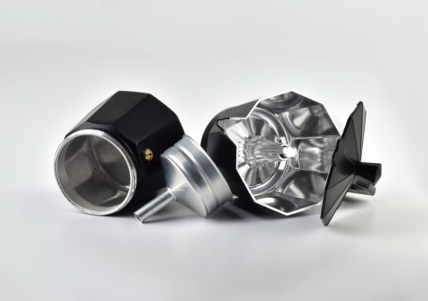 Kawiarka TERESA marki ALLESKEN. Stylowy zaparzacz do tradycyjnego parzenia kawy. Pozwala na przygotowanie kawy o mocnym i aromatycznym smaku. Wykonany z wysokiej jakości stopu aluminium. Dolny zbiornik na wodę zabezpieczony jest zaworem, który chroni przed nadmiernym wzrostem ciśnienia pary. Nie należy myć w zmywarce. Agresywne środki chemiczne reagują ze stopem aluminium. Nie nadaje się do kuchenek indukcyjnych. Instrukcja parzenia: Do dolnego naczynia należy wlać zagotowaną wodę w ilości nie przekraczającej ciśnieniowego zaworu bezpieczeństwa. Następnie umieszczamy lejek z sitkiem, do którego wsypujemy świeżo zmieloną kawę. Wsypujemy ją po brzegi, wyrównujemy i usuwamy nadmiar. Kawy nie należy ubijać. Skręcamy oba naczynia i stawiamy na kuchence. Po kilku minutach, gdy wrząca woda przesączy się wskutek ciśnienia przez kawę w sitku, do górnego naczynia napływa zaparzona kawa. Gdy z otworu w dolnym zbiorniku zacznie wydobywać się para, kawiarkę zdejmujemy z kuchenki. Czas zaparzania 4-7 minut DŁUGOŚĆ 16,00 cm SZEROKOŚĆ 9,00 cm WYSOKOŚĆ 19,00 cmwaga: 350g/z opakowaniem 440g KUCHENKA INDUKCYJNA: NIEZMYWARKA: NIEKOLOR: czarny mat