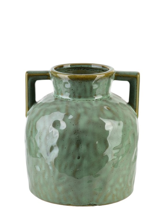 Stylowa ceramika z nutą klasyki i świeżości.Wazon ARINA GREEN to wyjątkowa dekoracja, która łączy klasyczną formę z nowoczesnym wykończeniem. Jego subtelna zieleń wprowadza do wnętrza atmosferę spokoju i naturalnej harmonii, a dwa funkcjonalne uchwyty nadają mu charakter inspirowany stylem śródziemnomorskim czy vintage. Wyróżniający się design z praktycznym akcentem. Dzięki wymiarom 8x18x20,5 cm i oryginalnej formie z uchwytami, wazon nie tylko pięknie prezentuje się jako ozdoba, ale również ułatwia codzienne użytkowanie. Uchwyty podkreślają jego dekoracyjny charakter, jednocześnie umożliwiając łatwe przenoszenie. Dekoracja, która mówi o dobrym guście. ARINA GREEN świetnie sprawdzi się zarówno w minimalistycznych aranżacjach, jak i we wnętrzach w stylu boho, retro czy natural. Może pełnić funkcję klasycznego wazonu na kwiaty lub dekoracyjnego naczynia stojącego solo na konsoli, komodzie czy stole.wymiary: 8x18x20,5cmwaga:864gśrednica otworu: 8cm