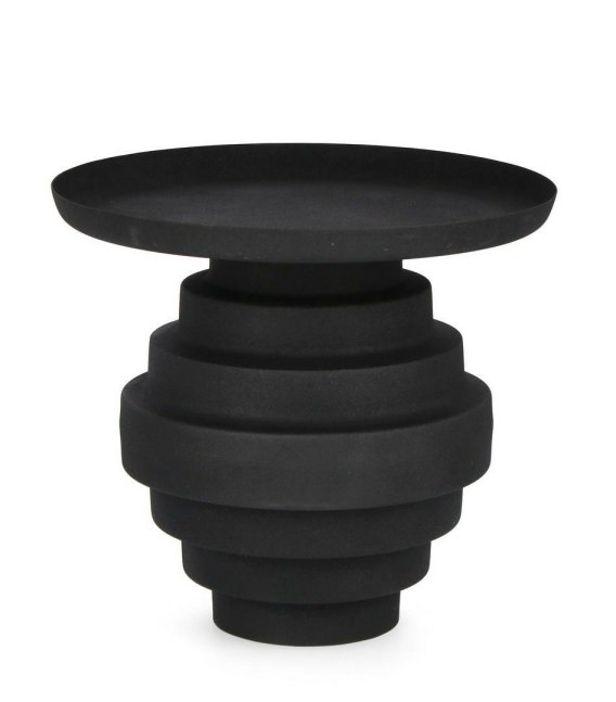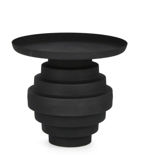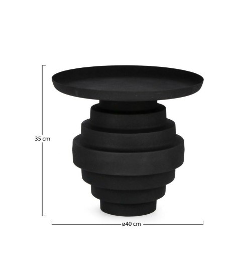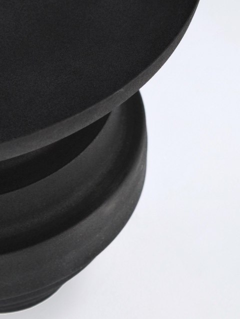 Wykonany z solidnej stali malowanej proszkowo, charakteryzuje się trwałością i odpornością na uszkodzenia, a jego matowe, lekko szorstkie wykończenie nadaje mu industrialnego charakteru. Średnica 40 cm i wysokość 35 cm sprawiają, że idealnie sprawdzi się zarówno jako stolik pomocniczy, jak i centralny punkt strefy relaksu.