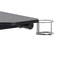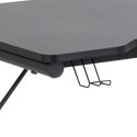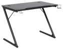 Biurko Trooper wykonane zostało z metalu malowanego proszkowo na kolor czarny oraz płyty MDF wykończonej laminatem w kolorze czarnym. Industrialny charakter i prostota wykonania sprawia, że biurko jest ponadczasowe i uniwersalne. Biurko dla graczy zostało zrobione z metalowej podstawy. Charakterystyczne nogi biurka mają kształt litery Z. Blat biurka to czarna płyta MDF. Nieregularny kształt blatu został dopasowany do osób spędzających przy biurku wiele czasu. Biurko wyposażone jest w wiele przydatnych udogodnień. Posiada ono dwa otwory na przewody, dzięki czemu przewody od komputera lub ładowarki telefonu będą wyglądać estetycznie. Biurko wyposażone jest również w haczyki oraz stojak na kubek kawy. Dzięki temu na pewno nie zalejemy laptopa lub książki napojem. Biurko wprowadzi surowy klimat oraz sprawdzi się w mniejszych pomieszczeniach dzięki swoim wymiarom. Waga biurka: 13,4 kg Maksymalna ilość szt. w kartonie: 1 Wymiary kartonu: 110 cm x 13 cm x 66,5 cm