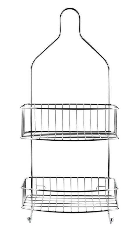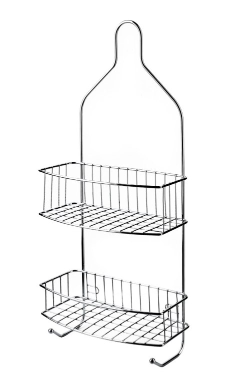 CARL SILVER Półka łazienkowa posiadająca dwie półki, wykonana z metalu.Wymiary: 15 cm (szerokość) x 11.5 cm (głębokość) x 56 cm (wysokość).Liczba półek: 2 półki.Kolor: SrebrnyDodatki w zestawie: Dwa wieszaki plastikowe do montażu. Idealna do użytku w łazience na przechowywanie kosmetyków, akcesoriów kąpielowych czy małych ręczników. Dzięki dołączonym wieszakom, możliwy jest łatwy montaż na ścianie lub na drzwiach kabiny prysznicowej.wymiary:15x11,5x56cm