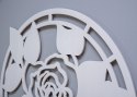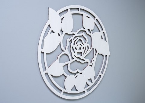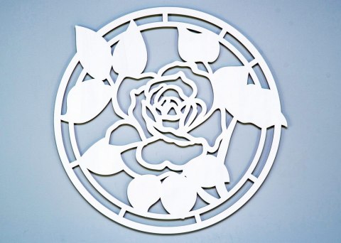 Ażurowy dekor ścienny inspirowany klasycznym motywem róży. Wniesie do Twojego wnętrza nutę klasyki i elegancji. Oryginalna dekoracja ścienna 3D ozdobi Twoją ścianę w salonie czy w sypialni, idealna nad sofę, łóżko czy komodę. Dekoracja wykonana z wysokiej jakości drewna ( naturalna sklejka brzozowa o grubości 4 mm ). Wymiar grafiki - 60 x 60 cm. Ręcznie wykończona i pomalowana ekologiczną wodną farbą.