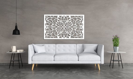 Dekoracyjna grafika ażurowa z uniwersalnym kwiatowym ornamentem.Oryginalna dekoracja ścienna 3D ozdobi Twoją ścianę w salonie czy w sypialni, idealna nad sofę, łóżko czy komodę. Stylowa dekoracja będąca unikalnym elementem Twojej aranżacji.