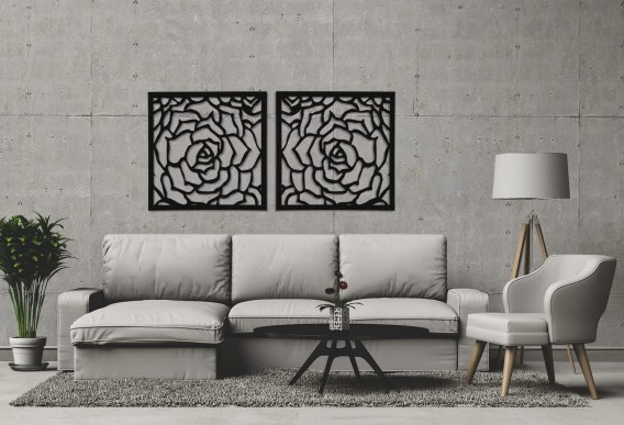 Ażurowy dekor ścienny inspirowany klasycznym motywem róży. Wniesie do Twojego wnętrza nutę klasyki i elegancji. Oryginalna dekoracja ścienna 3D ozdobi Twoją ścianę w salonie czy w sypialni, idealna nad sofę, łóżko czy komodę. Stylowa dekoracja będąca unikalnym elementem Twojej aranżacji. Dekoracja wykonana z wysokiej jakości drewna ( naturalna sklejka brzozowa o grubości 4 mm ). Ręcznie wykończona i pomalowana ekologiczną,wodną farbą. Wymiar dekoracji , dyptyk - 60 x 120 cm. Zalecany sposób montażu: małe elementy - taśma piankowa dwustronna lub haczyki montażowe TESA, większe elementy - klej montażowy do listew i sztukaterii ( np klej uniwersalny " ośmiorniczka ", mała tubka 50 g.).
