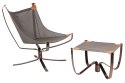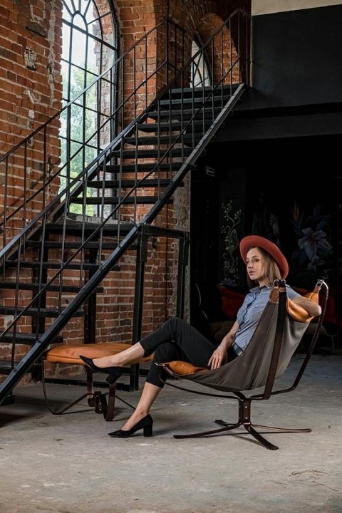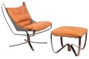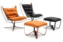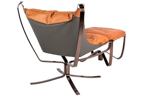Fotel ARNI LOW z podnóżkiem pomarańczowy - ekoskóra, miedz