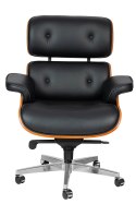 Fotel biurowy LOUNGE GUBERNATOR czarny - sklejka różana, skóra naturalna, stal polerowana