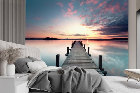 Fototapeta, Pomost jezioro zachód słońca - 368x254