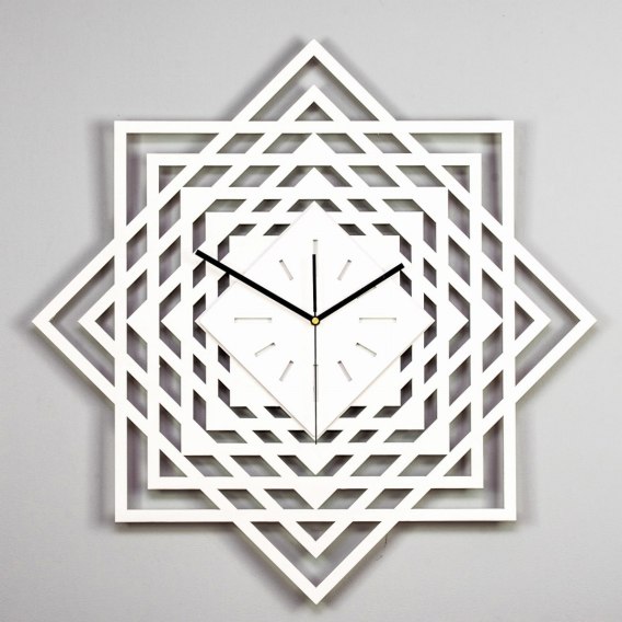 Dekoracyjny, ażurowy zegar inspirowany klasycznym, geometrycznym wzorem.