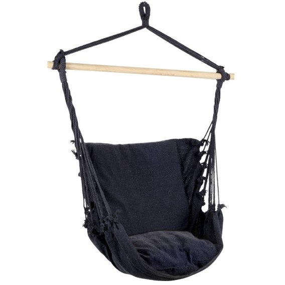 WYTRZYMAŁY MATERIAŁ - Wykonany z trwałej i wytrzymałej tkaniny. Połączenie 60% bawełny i 40% poliestru sprawi, że materiał jest wygodny, a zarazem odporny na uszkodzenia. Hamak wraz z poduszką w kolorze grafitowym. Maksymalne obciążenie 120 kg.