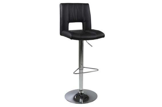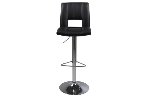 Hoker Sylvia to mebel do nowoczesnego baru lub jadalni. Siedzisko z pianki poliuretanowej pokryte jest tapicerką z tkaniny PU leather look black BK1. Podstawę stanowi długa, smukła noga z metalu w kolorze chromu. Hoker posiada wysokie, wygodne oparcie oraz dodatkowe podparcie dla nóg. Stołek posiada regulację wysokości. Ilość kartonów: 1 Wymiary kartonów: 60x44x44cm Waga kartonów: 10,5kg