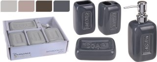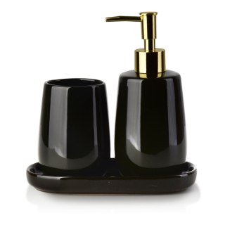 Komplet łazienkowy z kolekcji JOFF marki BATHLAB by MONDEX. Ceramiczny 3 częściowy komplet w odcieniach beżu w wytłocoznym napisem BATH.Zestaw łazienkowy JOFF jest idealny do każdej nowoczesnej łazienki. Nowoczesny design dodaje charakteru Twojej przestrzeni, zapewniając jednocześnie długotrwałą trwałość. Zestaw wykonany jest z wysokiej jakości ceramiki z srebrną pompką. Ceramiczny zestaw do mydła JOFF marki BATHLAB to wysokiej klasy kolekcja łazienkowa, która idealnie nadaje się do modernizacji każdej nowoczesnej łazienki. Wykonany z trwałego materiału ceramicznego, zestaw zawiera trzy elementy: dozownik mydła, mydelniczkę i kubek na szczoteczki do zębów. Elegancki i nowoczesny design bezowej ceramiki bez trudu komponuje się z niemal każdym wystrojem łazienki.dozownik: 390ml 7x7xh20cmkubek: 390ml 7x7xh12cmmydelniczka: 10,5x10,5xh2,5cmpompka: kolor srebrnywymiar opakowania: 17x24xh8cmwaga całego zestawu: 684g / 808g z opakowaniemzapakowany jednostkowo w eco box z pokrywą z pvc, co ułatwia eksponowanie towaru w sklepie, idelanie sprawdzi się na prezent