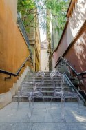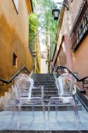 Dzięki zastosowaniu przezroczystego materiału, krzesło optycznie nie zabiera miejsca.