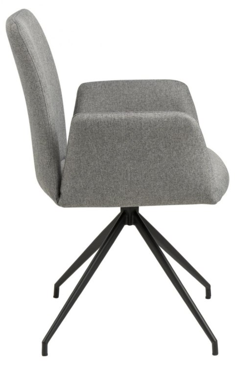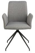 Krzesło Naya to doskonałe rozwiązanie do nowoczesnej sali konferencyjnej, lobby lub biura. Doskonale sprawdzi się również w pokoju nastolatka, restauracyjnej przestrzeni czy hotelowych pomieszczeniach.Siedzisko krzesła, które trochę przypomina kwiat tulipanu, zostało zrobione z wyprofilowanej sklejki oraz obite jest miękką tkaniną Malmo light grey 90. Pod eko skórą jest miękka gąbka, która gwarantuje wygode siedzenia. Krzesło posiada lekko rozszerzające się na zewnątrz podłokietniki. Podstawą krzesła są cztery nogi malowane proszkowo na czarno, które połączone z siedziskiem są w jednym miejscu wspólnym. Waga krzesła to 9,2 kg. Maksymalne obciążenie: 120 kg. Krzesło posiada funkcję auto return. Maksymalan ilość szt. w kartonie: 1 Wymiary kartonu: 60cm x 51cm x 58cm Wysokość siedziska: 65 cm Szerokość siedziska: 4 cm Głębokość siedziska: 33 cm Wysokość podłokietników: 45 cm