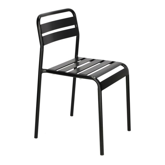 Wykonane w całości metalowe krzesło Terra to idealny mebel na balkon, taras lub do ogrodu. Minimalistyczne krzesło lakierowane proszkowo może być używane na zewnątrz. Poziome listwy krzesła gwarantują wentylację oraz wygodę użytkowania. Krzesło Terra sztapluje się. Można układać w stosy do 6 szt. Szerokość siedziska: 38 cm. Głębokość siedziska 38 cm. Grubość nóg 2,4 cm. Waga krzesła 5,5 kg Nie wymaga montażu Max. 4 szt w kartonie Wymiary kartonu: 88x62x50 cm. Waga kartonu: 24cm