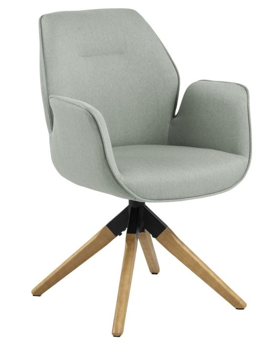 Krzesło w skandynawskim stylu Aura jest niezwykle efektownym i wygodnym siedziskiem. Odpowiednio wyprofilowane siedzisko zostało obite miękką pianką tapicerską oraz tkaniną Town light grey 13. Tkanina krzesła jest łatwa w utrzymaniu w czystości. Ciepły odcień szarości sprawi, że wnętrze jadalni lub salonu stanie się ciepłym i przytulnym. Podłokietniki o optymalnej wysokości zostały wyprofilowane na zewnątrz, aby spotęgować komfort siedzenia. Podstawą krzesła są cztery nogi z litego i olejowanego drewna kauczukowego. Nogi krzesła wychodzą z jednego wspólnego punktu i rozchylają się dość szeroko, aby zagwarantować stabilizację. Siedzisko krzesła jest obrotowa. Funkcję tą zawdzięcza czarnemu, metalowemu mechanizmowi, który prócz funkcji obrotu łączy również krzesła z siedziskiem. Wymiary kartonu: 77x42x62cm Max. ilość szt w kartonie: 1 Waga: 12kg