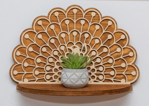 Półeczka składa się z dwóch warstw - pierwsza z solidnej 15 mm sklejki brzozowej, druga zaś z delikatnego, ażurowego, koronkowego wzoru o grubości 4 mm, który dodaje całej dekoracji lekkości. Motyw kaktusów w stylu boho uniwersalny i bardzo dekoracyjny