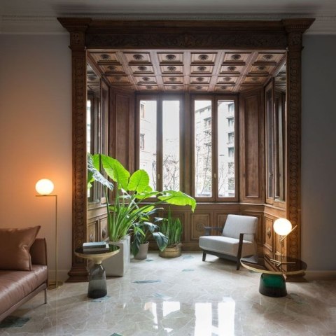 Produkt F3173059 IC to designerska lampa podłogowa zaprojektowana w 2014 roku przez Michael'a Anastassiades'a. Na lampę składa się klosz z dmuchanego szkła i złota symetryczna podstawa. Lampa podłogowa Flos IC wygląda elegancko i luksusowo. Źródłem światła w lampie jest żarówka E14, którą należy dokupić osobno. Na kablu lampy znajduje się ściemniacz. Lampa emituje światło rozproszone, które wydostając się z białego, okrągłego klosza przypomina planetę. Lampa stojąca nadaje się do dekoracji przestrzeni komercyjnych oraz do prywatnego mieszkania. Prestiż, którym cechują się produkty marki Flos, zostanie zauważony przez klientów luksusowych hoteli. W ofercie sklepu dostępna jest także większa wersja lampy.