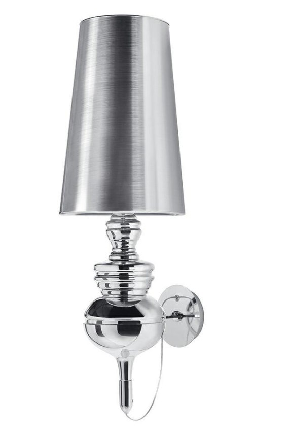 Kinkiet Queen to klasyczna lampa w nowoczesnym wydaniu. Jest elegancka i wyrazista, a zarazem minimalistyczna. Gładki abażur został wykonany z tworzywa sztucznego i jest błyszczący. Stelaż lampy został uformowany z aluminium i ma lustrzany połysk. Prostota designu lampy Queen powoduje, że sprawdzi się ona zarówno w salonie, sypialni, przedpokoju jak również w jakiejkolwiek innej przestrzeni takiej jak hotele cz restauracje, zwłaszcza w aranżacjach w stylu klasycznym i lamour. Lampy Queen są dostępne w kilku wariantach - również jako lampy podłogowe, lampy biurkowe i wiszące, co umożliwia tworzenie różnorodnych i spójnych aranżacji, np. poprzez umieszczenie kilku sztuk obok siebie. Lampa sprzedawana bez źródła światła.
