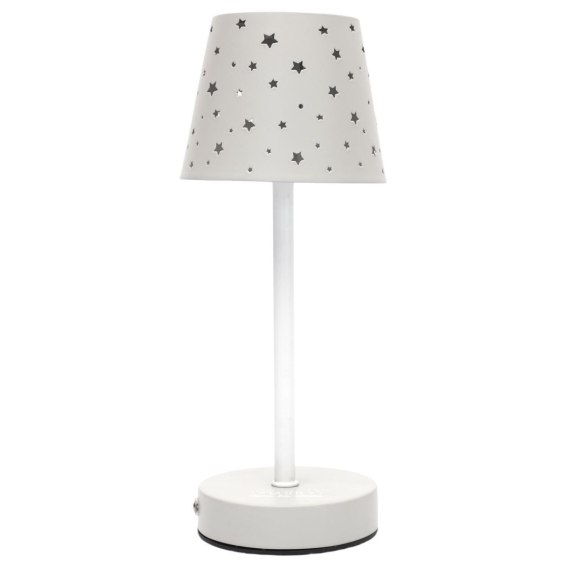 Lampa stołowa ładowana z ażurowymi gwiazdkami biała