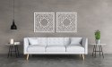 Ornament-arabeska wyróżnia się niezwykle misternym wzorem. W obrębie ramek znajdziemy zarówno małe kropelki, ozdobne gwiazdki oraz płatki kwiatów, które cieszą koronkowym wycięciem.Ozdoby na ścianę wstylu orientalnym najlepiej prezentują się w duetach, ale nic nie stoi na przeszkodzie, by powiesić tuż obok siebie trzy panele ażurowe ze sklejki. Zwielokrotnionymarokański motyw doda pomieszczeniu elegancji i wyjątkowego klimatu.