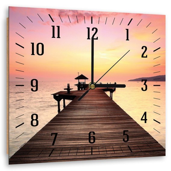 Obraz z zegarem, Pomost i zachodzące słońce - 40x40