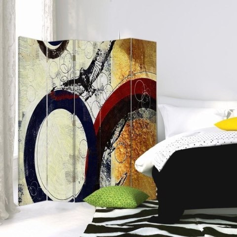 Płótno naciągnięte na solidną ramę MDF/drewno. Parawany posiadają metalowe zawiasy i praktyczne nóżki chroniące przed zarysowaniem podłogi.