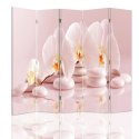 • Płótno naciągnięte na solidną ramę MDF/drewno. Parawany posiadają metalowe zawiasy i praktyczne nóżki chroniące przed zarysowaniem podłogi.