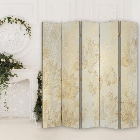 • Płótno naciągnięte na solidną ramę MDF/drewno. Parawany posiadają metalowe zawiasy i praktyczne nóżki chroniące przed zarysowaniem podłogi.