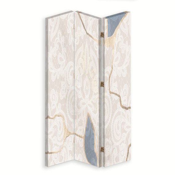 Płótno naciągnięte na solidną ramę MDF/drewno. Parawany posiadają metalowe zawiasy i praktyczne nóżki chroniące przed zarysowaniem podłogi.