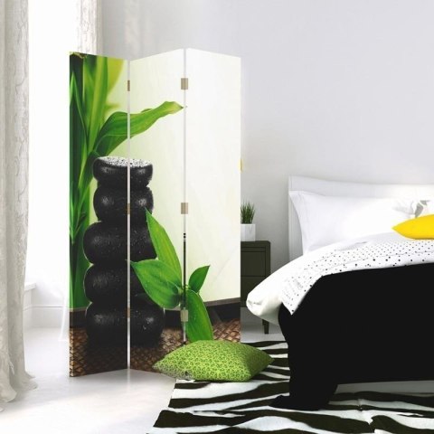 Płótno naciągnięte na solidną ramę MDF/drewno. Parawany posiadają metalowe zawiasy i praktyczne nóżki chroniące przed zarysowaniem podłogi.