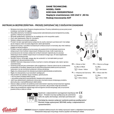 • Mocowanie E27: Oprawa sufitowa z mocowaniem E27, odpowiednia do żarówek o maksymalnej mocy 5W (żarówka nie jest dołączona do zestawu).