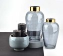 szarego dymionego szkła ze złotą kalką u nasady wazonu. Przepiękny i nowoczesny. W dzisiejszych czasach wazon to nie