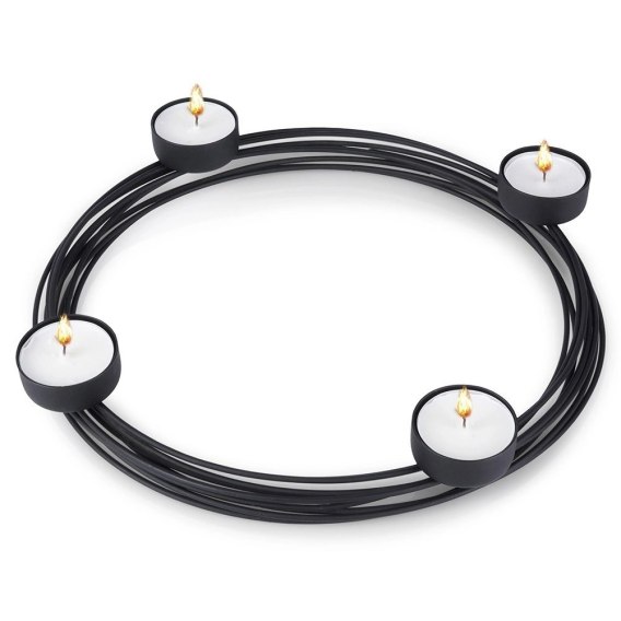<li><strong>NA TEALIGHT</strong> - Świecznik na cztery świeczki typu tealight lub tradycyjne. Pasują do niego świeczki o maksymalnej średnicy 4 cm. Świecznik ma wymiary zewnętrzne: 28 x 28 x 3,5 cm.</li>