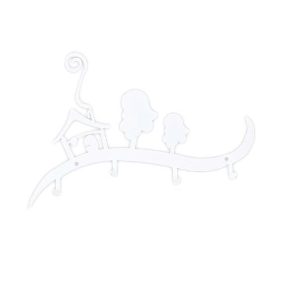 Wieszak ścienny Domek jest idealnym rozwiązaniem do przedpokoju. Stylowy wieszak z motywem domku oraz drzew ociepli każde wnętrze i pomoże stworzyć przyjazną atmosferę mieszkania. Wycinane laserowo elementy wieszaka są bardzo trwałe, odporne na zarysowania oraz zabrudzenia. Na pofalowanej listwie wieszaka zostały umieszczone 4 haki , o obciążeniu 3kg każdy, na których można powiesić klucze, torebki lub kurtki. Listwa dostępna jest w dwóch kolorach. Maksymalne obciążenie listwy to 12kg. Do wieszaka załączany jest zestaw montażowy, który składa się z kołków, zaślepek i śrubek. Wysokość: 28cm Szerokość: 41cm Max. ilość sztuk w kartonie:1 Wymiary kartonu:35cm x 49cm x 4cm Waga opakowania: 2kg