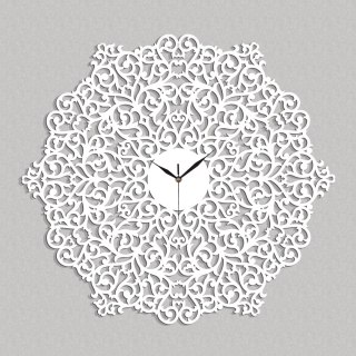 Dekoracyjny, ażurowy zegar inspirowany stylem barokowym. Ten niepowtarzalny, ażurowy zegar wniesie do Twojego wnętrza klimat vintage. Zegar wykonany z najwyższej jakości, naturalnej sklejki brzozowej o grubości 4 mm, pomalowanej na wybrany kolor ekologiczną, wodną farbą</p> Wymiar całkowity dekoracji 50 x 62 cm. Grubość calkowita dekoracji 1,9 cm ( warstwa sklejki 4 mm + mechanizm zegara 15 mm) Bejcowany w kolorze dębu. Istnieje możliwość zamówienia dekoracji o większych rozmiarach 60 x 74 cm ( + 30 zł) W naszych zegarach stosujemy mechanizmy o podwyższonym standardzie , ciche, plynące, pracujące bezszmerowo, zasilane baterią 1,5 V AA (paluszek) - nie jest dołączony do zestawu. Łatwy montaż na zawieszce będącej częścią mechanizmu zegarowego.