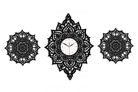 Dekoracyjny zegar ażurowy + dwie mandale to oryginalny zestaw który doda uroku Twojemu wnętrzu.