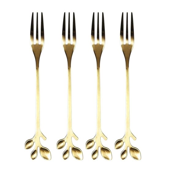 Zestaw 4 złotych widelców do deserów listki