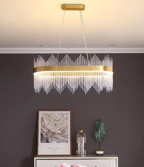 Wszechstronność i Styl: Doskonałe rozwiązanie zarówno do nowoczesnych wnętrz, jak i eleganckich przestrzeni w stylu glamour. Idealnie sprawdzi się nad stół w jadalni, w salonach, pokojach hotelowych czy restauracjach, wprowadzając do każdego pomieszczenia luksusowy akcent.