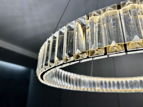 Przepiękna Lampa LED z linią  kryształów K9 o średnicy 60 cm.