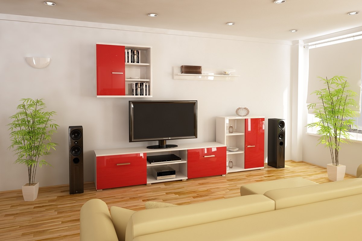 Oświetlenie i barwy mebli mają znaczący wpływ na odbiór pomieszczenia. W małych salonach najlepiej działają jasne kolory — biele, beże, piaskowe odcienie drewna i delikatne szarości. Dzięki nim meble stają się tłem dla aranżacji, a pokój wygląda na większy. Ciemniejsze barwy sprawdzają się tylko w większych salonach albo jako akcent, np. szafka RTV na tle jasnej ściany. Równie ważny jest podział frontów: poziome linie rozszerzają optycznie ścianę, natomiast pionowe dodają wrażenia wysokości — można wykorzystać te reguły do korekty proporcji pokoju.