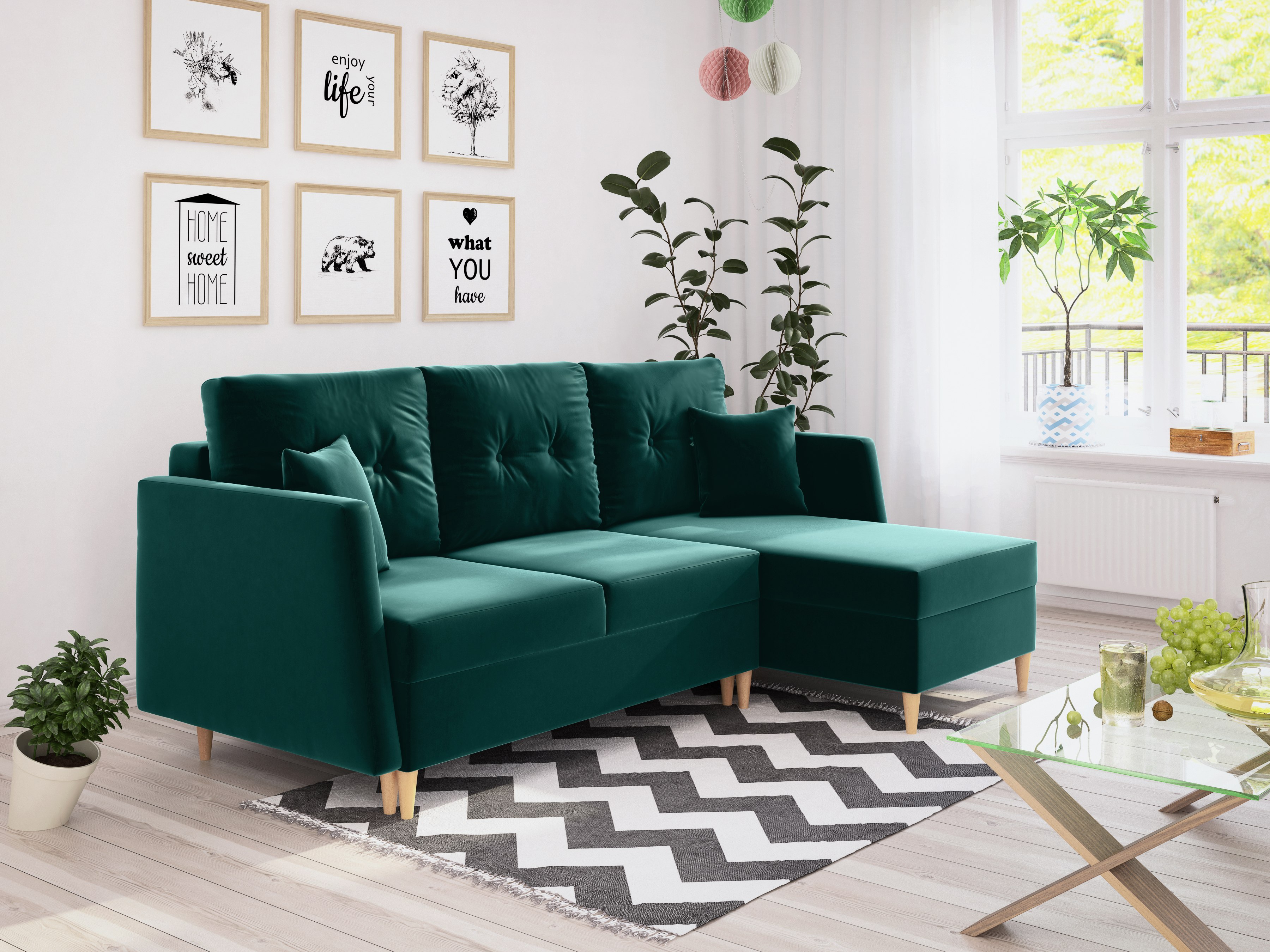 - Sofa daje więcej elastyczności w małych pokojach, narożnik — więcej miejsc siedzących.