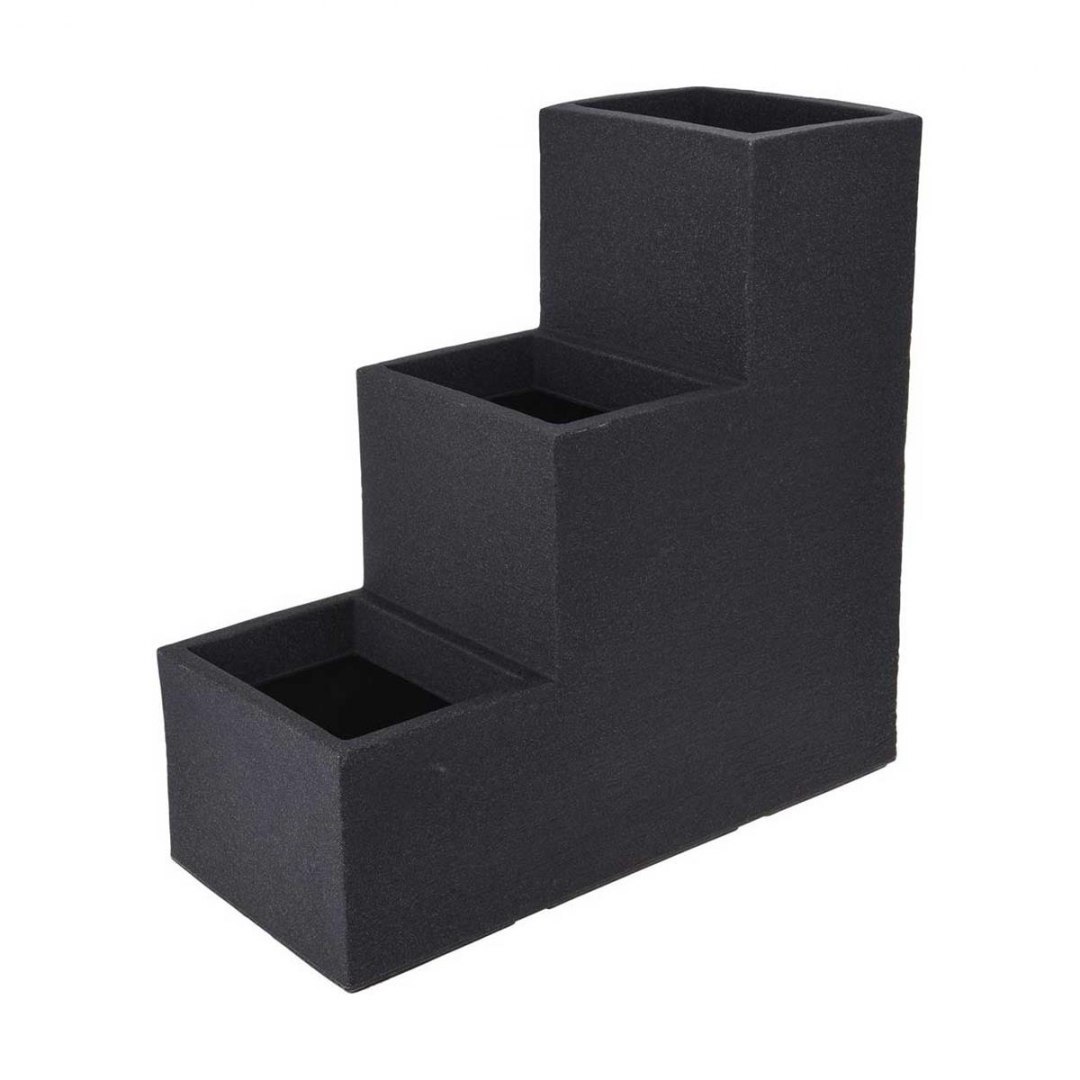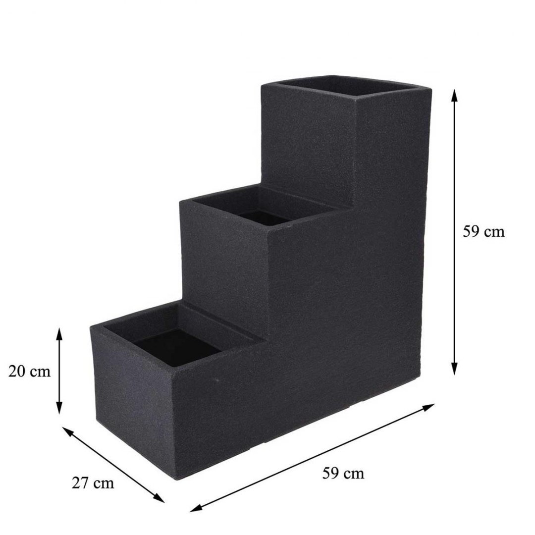 Kwietnik kaskada, to wykonany z trwałego tworzywa sztucznego kwietnik, który posiada kilka poziomów wysokości donic. Donica odporna na działanie mrozu i promieni UV dlatego świetnie poradzi sobie na nasłonecznionym balkonie a zimą bez problemu przezimujesz ją bez konieczności wnoszenia do budynku gospodarczego czy komórki; na wiosnę zastaniesz ją gotową do użytku na balkonie w nienaruszonej formie.