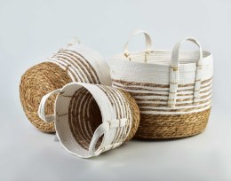 Podążając za trendami miejskich dżunglii postaw na kosze z juty, które z powodzeniem można zastosować jako naturalne osłonki na doniczki. Koszyk jutowy sprawi, że Wasze piękne rośliny nadadzą mieszkaniu istnie dzikiego i naturalnego wyglądu rodem z rajskich klimatów i pozwolą każdego dnia przenieść się na egzotyczne wakacje. W ofercie znajduje się wiele modeli, jutowe kosze mogą służyć jako nietuzinkowe ozdoby, lub jako doniczki. Do wyboru są różne kształty koszyk jutowy z uchwytami, przypominający miskę lub walcowate pudełka. Co więcej, można znaleźć klasyczne beżowe jutowe kosze, albo nietypowe wariacje kolorystyczne. Dodatki dostępne nawet w ekstrawaganckiej wersji z pomponikami lub koronką. Kosze z juty sprzedawane także w gotowych zestawach. Także nasze kosze z juty jako produkt organiczny dedykujemy dla miłośników wnętrz boho. Uwierzcie, że kosze z juty naprawdę mocno podkręcą wygląd waszego wnętrza.